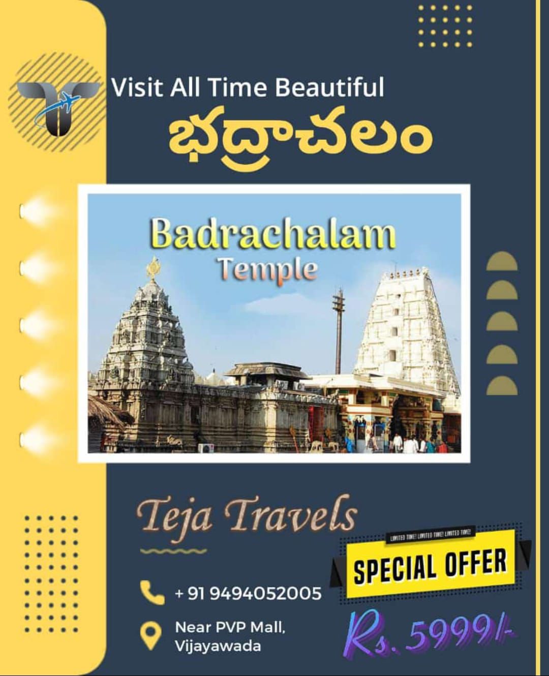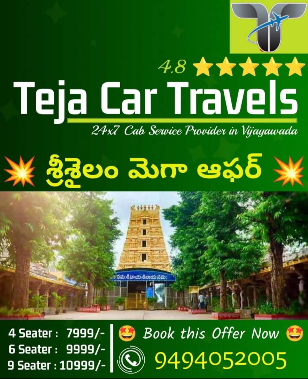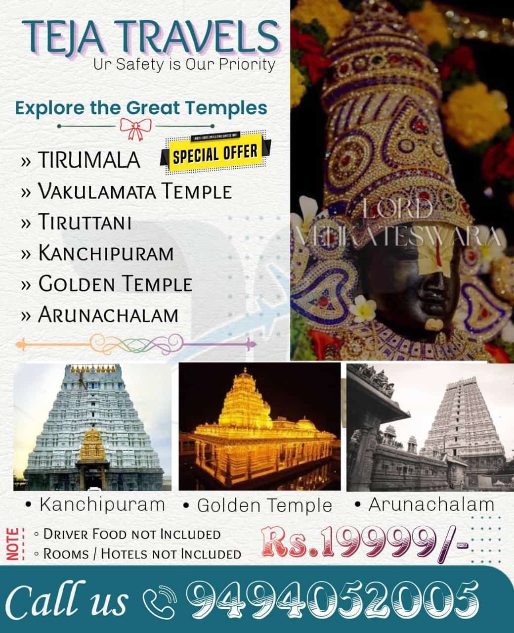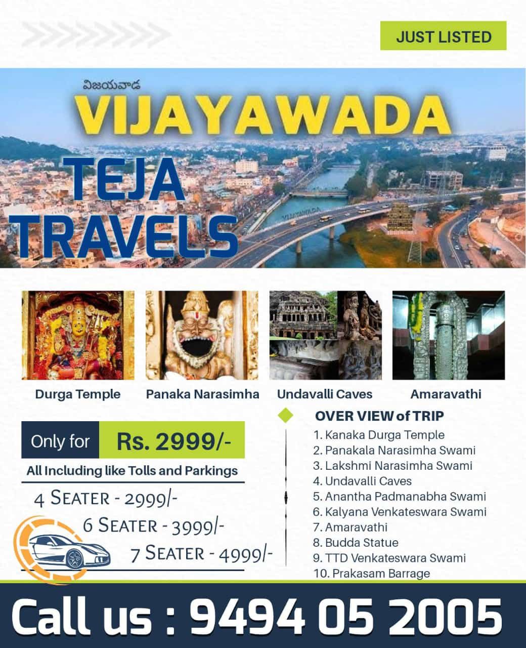 Teja Travels is a trusted name in car rental services in Vijayawada, offering safe, comfortable, and affordable cab solutions for both local and outstation travel. With years of service excellence, we have built a reputation for punctuality, professionalism, and customer satisfaction. Whether you are planning a quick city ride, a one‑way trip to Hyderabad, or a spiritual temple tour across Andhra Pradesh, Teja Travels ensures that your journey is smooth, memorable, and hassle‑free.